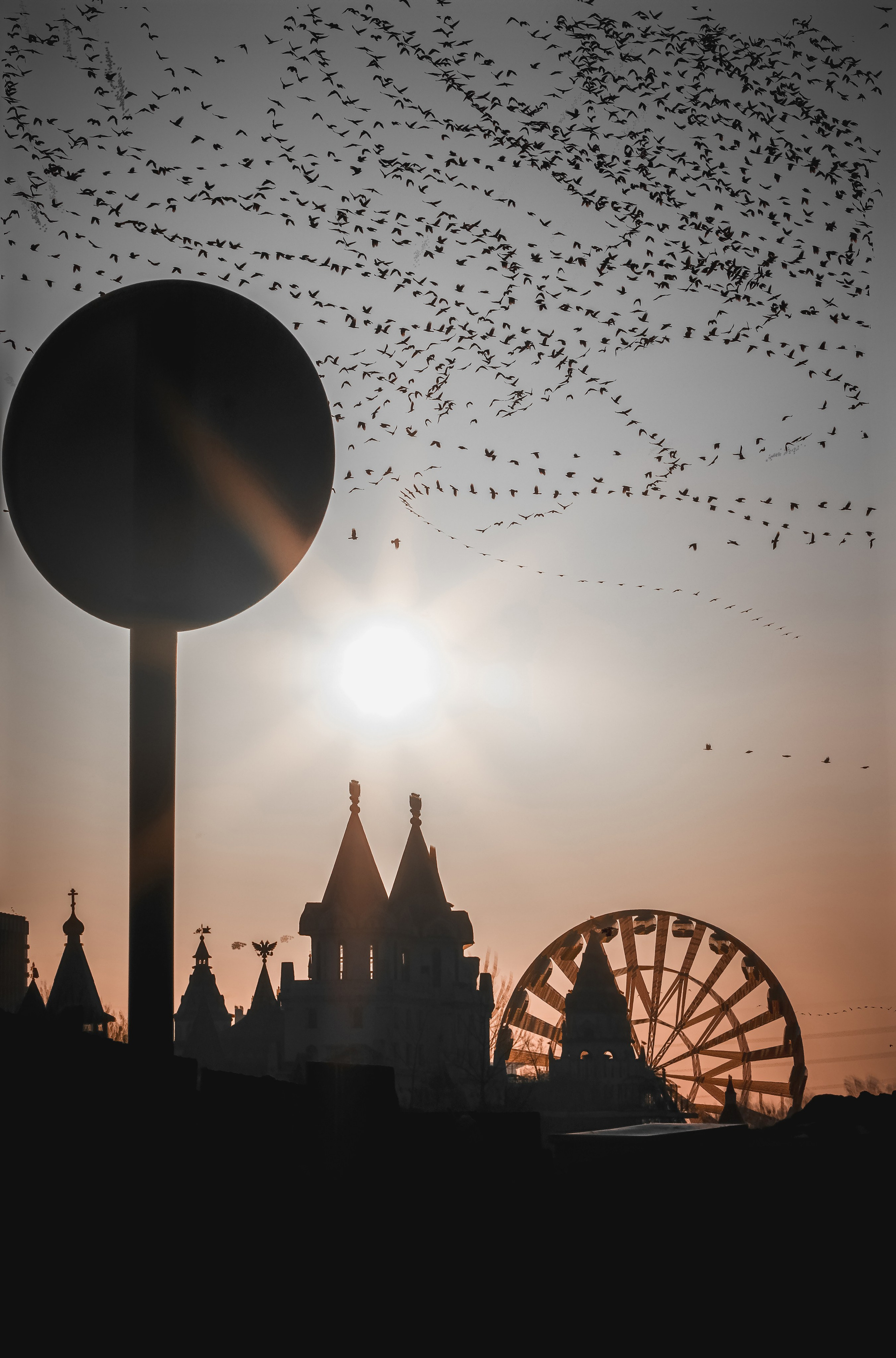 Показать невидимую красоту движения птиц во время полета в пространстве города. Обратить внимание людей на природу мегаполиса. Автор — проводник, который открывает зрителю тайные символы природы. Холст — небо, кисть — птицы.